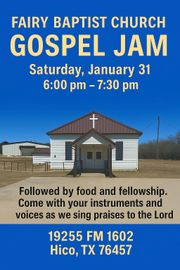 If you are considering a new place of worship or a relocation to our area, we would love to have you be our guest. Fairy Baptist Church is located in the small community of Fairy on FM 1602, 10 miles south of Hico, Texas.